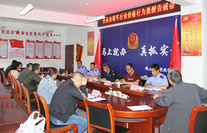 8月5日,岷县市场监管局召开全县出租车行业价格行为提醒告诫会。胜通、陇通、洮河、永丰等四家出租车公司负责人及业务人员,县市场监管局综合行政执法队、消费维权、价格监管股室负责人及业务人员参加了会议。 会议组织学习了《中华人民共和国价格法》《价格违法行为行政处罚规定》《关于商品和服务实行明码标价的规定》等法律法规;传达学习了《价格监督检查提醒告诫办法》《关于调整岷县城区出租车客运价格的批复》和《关于调整岷县城区出租车运价有关问题的补充通知》;宣读了《出租车客运价格行为提醒告诫书》。 会议指出,县域部分出租车公司监管不到位,出租车司机的自律性不强,在出租车客运服务中存在服务质量差、不打表收费、不按计价器显示金额收费(晚上12点后)、乱收费、多收费、随意甩客、拒载等现象,不同程度的侵害了消费者的合法权益,投诉举报案件的不断发生,扰乱了正常的客运秩序。基于加强出租车客运服务的自律性,规范出租车市场客运服务意识,创造和谐文明、安全放心的消费环境,召开此次提醒告诫会十分重要,也非常必要。 会议要求,一要认真领会会议精神,扎实开展法律法规和文件内容的学习和落实,要遵循公平、合法、诚实、信用的原则,要加强企业和行业价格自律、规范价格行为;二要认真开展自查自纠,找出问题清单,制定有力的措施,明确目标责任,逐项加以整改,及时规范出租车客运行为。三要加强法律法规的学习,完善内部管理制度,建立健全预防和惩戒机制,四要及时开展适时加强对出租车司机的教育和管理,引导其把消费者利益放在首位,提高客运服务质量,打造岷县出租车服务品牌,为创造良好的放心消费环境和促进岷县经济的高质量发展做出积极地贡献。 供稿:岷县市场监督管理局 编辑:郭迪 |