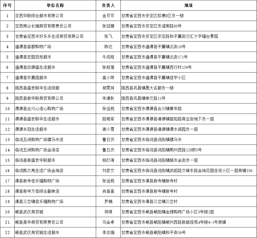 定西市第一批开展“放心食品超市自我承诺”活动企业公示名单