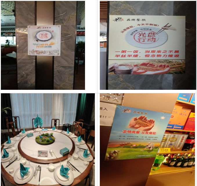 上榜理由:餐具摆放整齐,餐桌上摆放光盘行动的桌签,经营场所张贴“光盘行动”“六项承诺”等宣传海报;经营场所环境干净,在显著位置张贴“公勺公筷 健康分餐”的宣传画;就餐环境干净整齐,有关制止餐饮浪费宣传氛围浓厚,在大厅墙壁粘贴“厉行节约 光盘行动 节约为荣 浪费可耻”“对浪费说NO”等宣传报。
