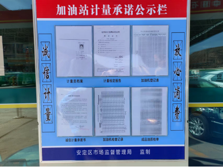 安定区中心加油站诚信计量公示栏
