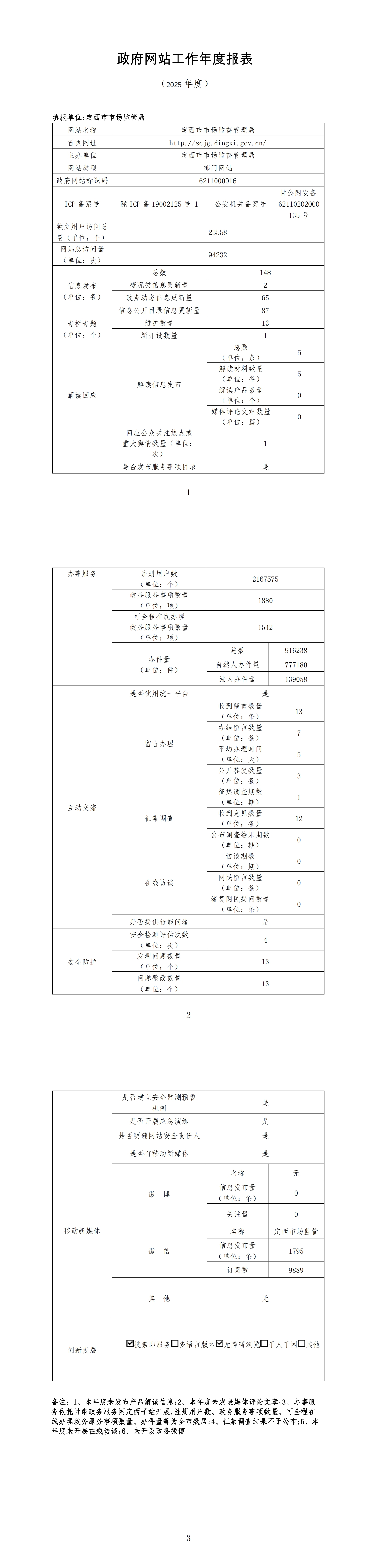 定西市市场监督管理局2025年政府网站工作年度报表